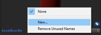 För att tilldela Asset Bundle-namnet, välj tillgången i projektvyn (detta kan vara Prefab, Texture eller till och med en scen), klicka sedan på inspektörsvyn längst ner på rullgardinsmenyn och klicka sedan på 'New...' (eller klicka på det befintliga Asset Bundle-namnet).