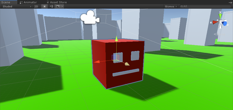 - Flytta huvudkameran inuti "Player 1"-objektet och rikta den mot en kub