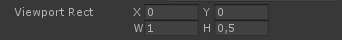 - Ändra Viewport Rect-värden för "Player 2" kamera till X: 0 Y: 0 W: 1 H: 0,5