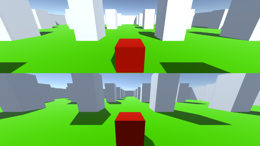 - Ändra Viewport Rect-värden för "Player 1" Kamera till X: 0 Y: 0,5 W: 1 H: 0,5