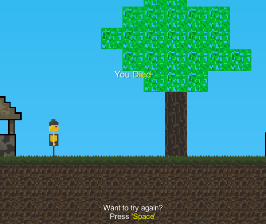 Och slutligen skapade jag etiketterna på skärmen med UI Canvas för att visa när spelaren dör och även en indikation på vilken knapp som ska tryckas på för att starta om nivån: