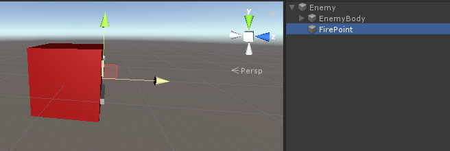 - För Fire Point, skapa ett nytt GameObject, flytta det inuti den levande fiendens instans och placera det något framför instansen, tilldela det sedan till Fire Point-variabeln: