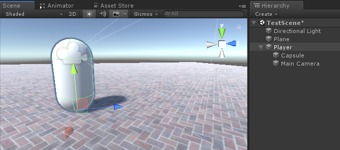 - Skapa en ny kapsel (spelobjekt -> 3D-objekt -> kapsel) och flytta den inuti "Player"-objektet