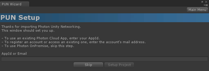 - Klicka på "Setup Project" i PUN Wizard, klistra in ditt app-ID och klicka sedan "Setup Project"