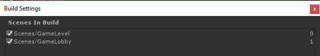 - Lägg till både MainMenu och GameLevel i bygginställningarna.