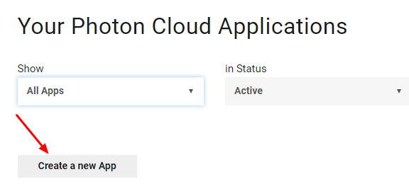 - Gå till applikationssidan genom att klicka på profilikonen och sedan "Your Applications" eller följ denna länk: https://dashboard.photonengine.com/en-US/PublicCloud