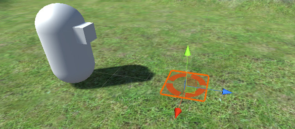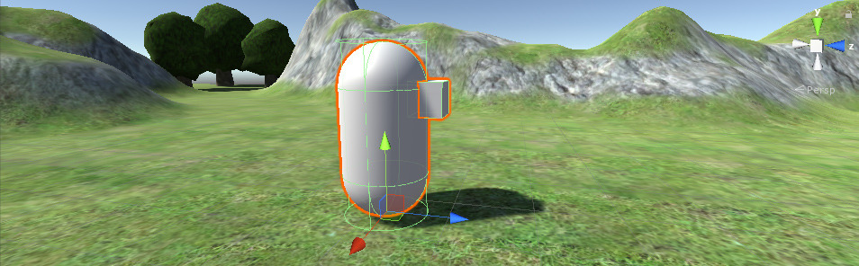 - Lägg till en spelarkropp (i mitt fall kommer jag att använda en enkel kapsel med en kub, men du kan lägga till en spelarmodell om du har någon). Skala ner till önskad storlek.