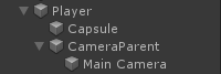 - Skapa ett nytt GameObject och namnge det "CameraParent" och flytta det inuti "Player"-objektet, ändra dess position till (0, 1.64, 0)