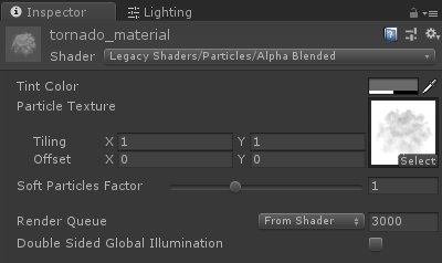- Ändra dess Shader till "Legacy Shaders/Particles/Alpha Blended"