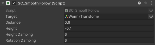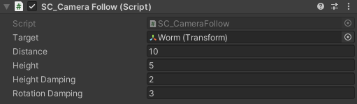 - Fäst SC_CameraFollow-skriptet till huvudkameraobjektet och tilldela "Worm"-sfären till målvariabeln: