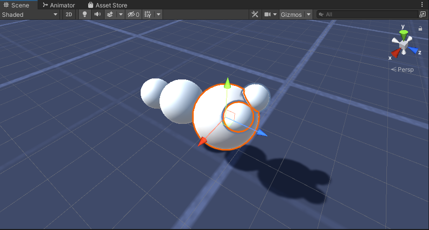 - Duplicera "Worm"-sfären, byt namn på den till "BodyPart1", ändra dess position till (0, -0,1, -0,9) och ändra dess skala till (0,8, 0,8, 0,8)