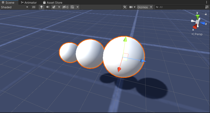 - Skapa en ny Sphere (GameObject -> 3D Object -> Sphere) ändra dess position till (0, 0, 0), ta bort dess SphereCollider-komponent och byt namn på den till "Worm"